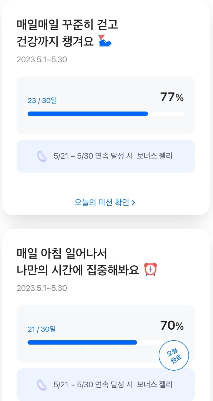 1~10, 11~21, 21~30일 기준으로 빠지지 않고 챌린지 달성 시 추가 젤리와 스페셜 젤리가 추가지급 되기 때문인데요.