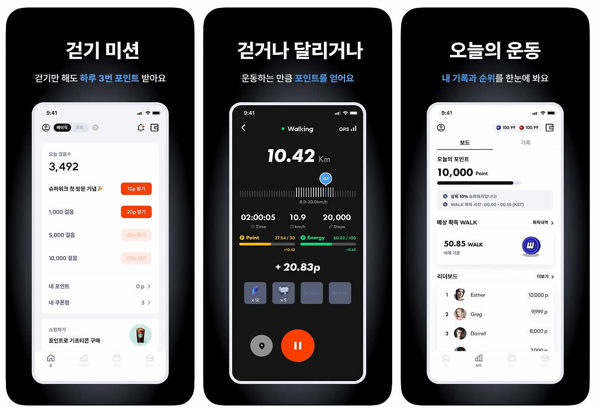 ☞ 장점: 가장 큰 장점은 걷기를 기준으로 하루에 200점까지 적립할 수 있다는 것입니다. 평소 어려운 블록체인 개념을 일상에서 가까이서 경험할 수 있습니다.