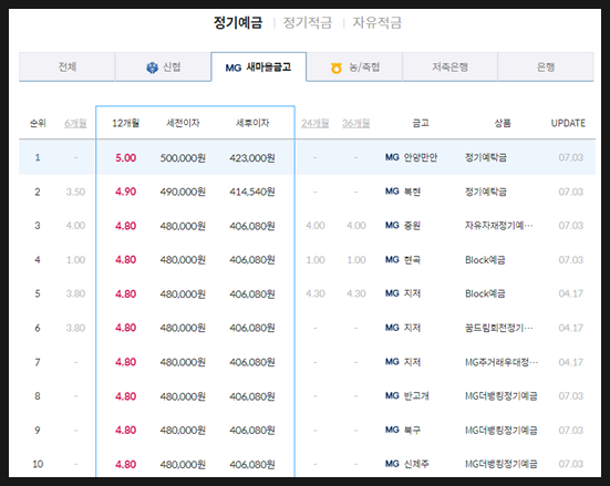 지금까지는 새마을금고 정기예금 금리가 다른 은행보다 1~2% 정도 많이 지급되고 있습니다.