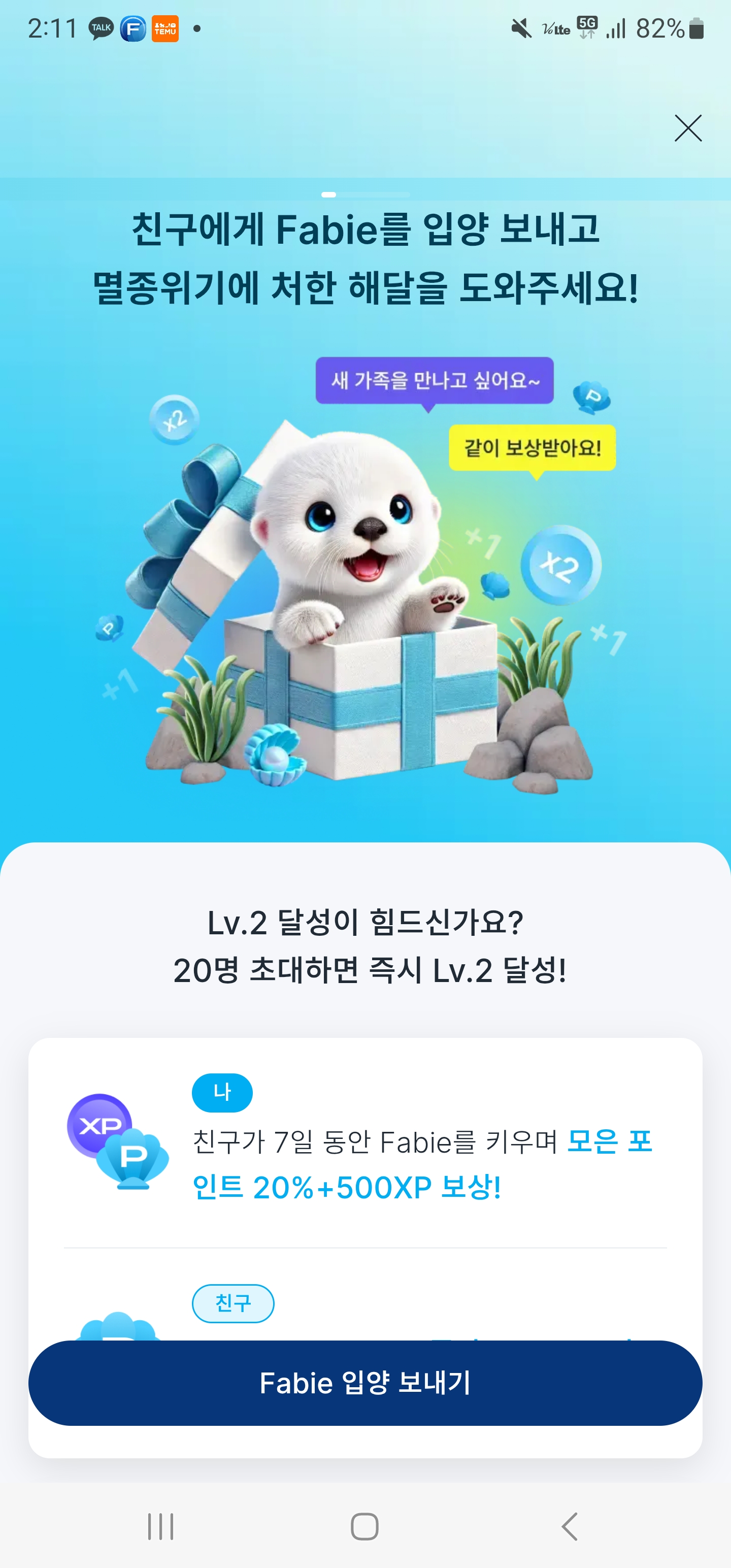 FABLO 수익 극대화의 화룡점정은 바로 친구 추천 시스템입니다. 본인의 추천 코드를 통해 친구가 가입하면, 친구는 2,000포인트를 받고 시작할 수 있으며 본인에게는 무려 2,000포인트 가 즉시 지급됩니다. 여기서 끝이 아닙니다. 그 친구가 미션을 통해 얻는 수익의 일부(약 10%)가 나에게 추가로 적립됩니다.