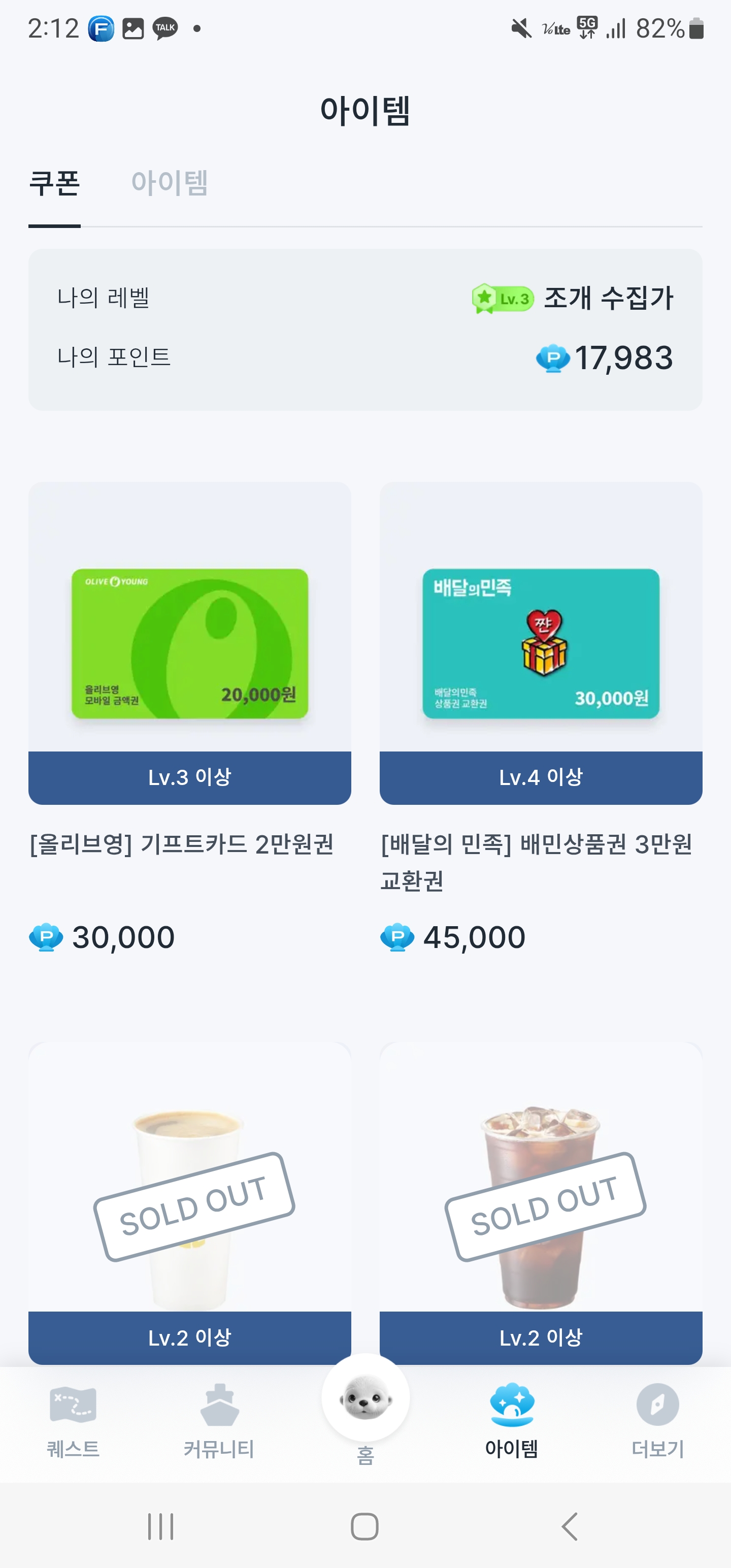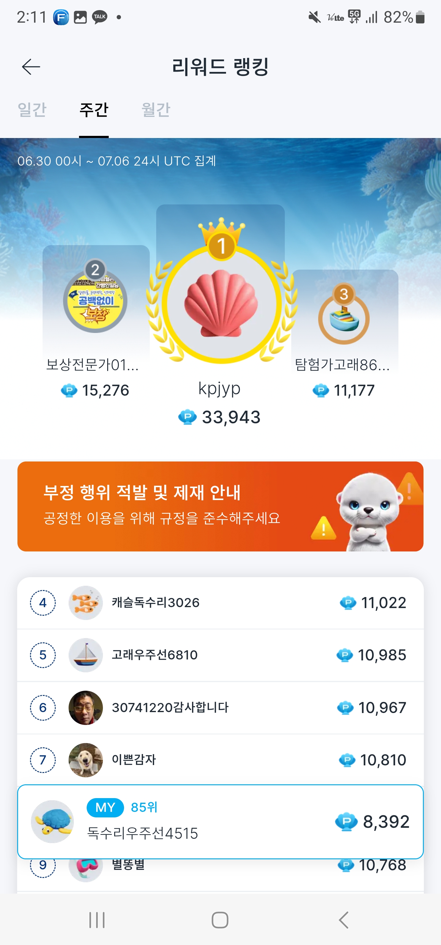 저 같은 경우에 지난 주만 해도 8,392 포인트를 벌었으며, 초반에 퀘스트 미션 수행을 하루 5개 까지 수행할 수 있기 때문에 그 퀘스트들을 다 수행할 때까지는 정말 빠르게 포인트를 획득할 수 있습니다.