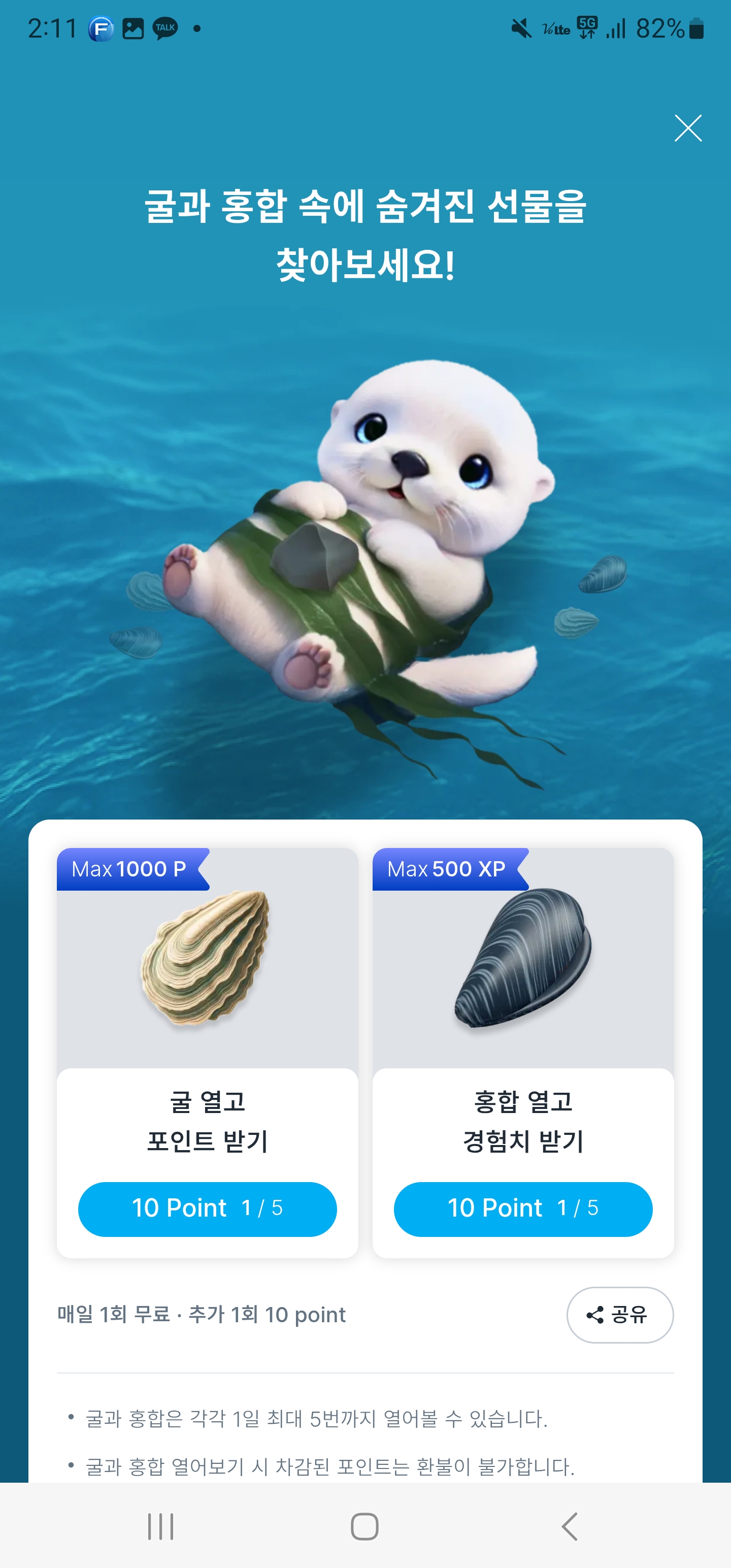 물론 지난 번 업데이트를 통해 기존에는 없던 만보기 기능도 생기고, 포인트 뽑기 미션 등도 생겨 다양한 경로로 포인트를 획득할 수 있게 성장하고 있습니다.