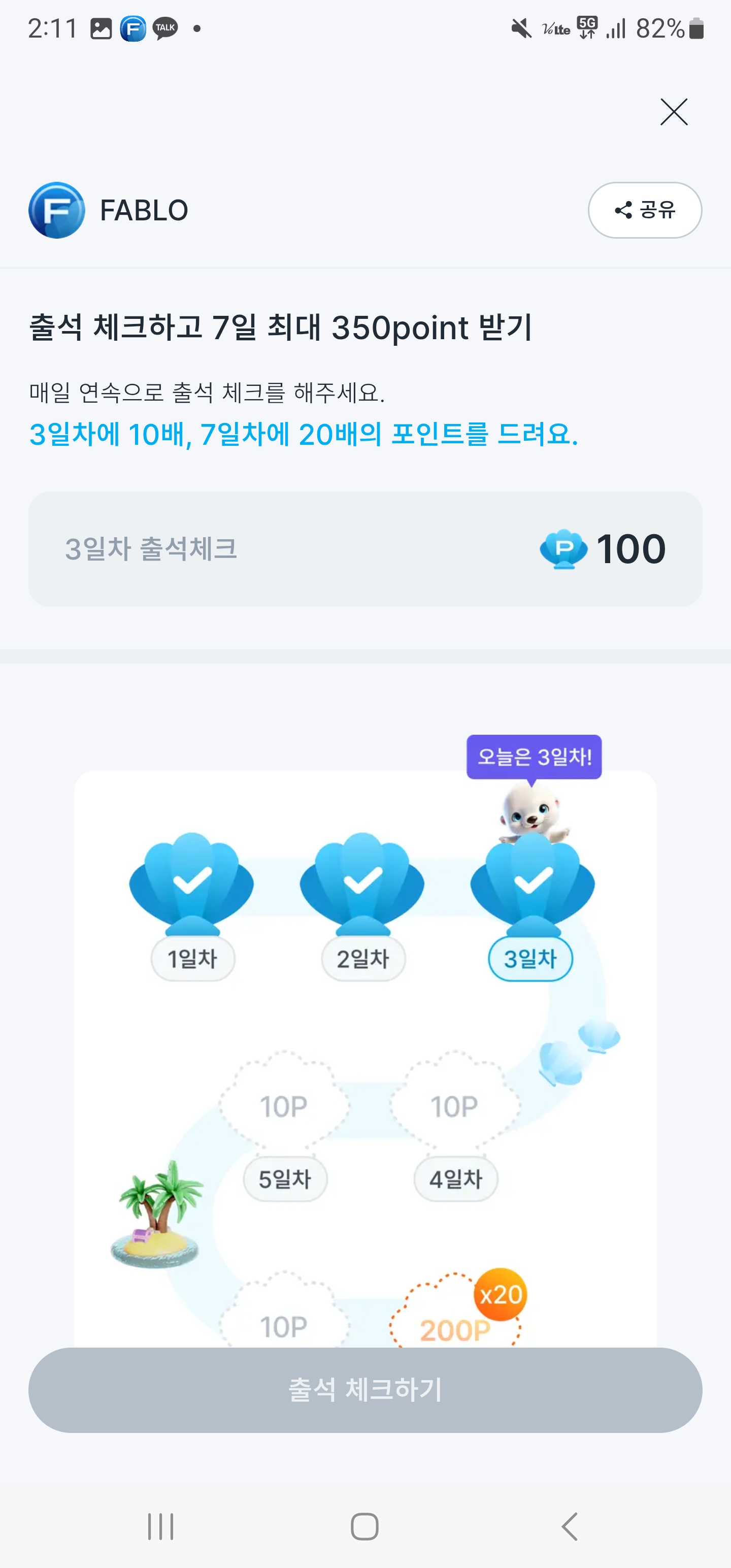 - 일일 예상 수익 : 80+221+200+50+7 = 558포인트 (현금가치 70% 약 400원)