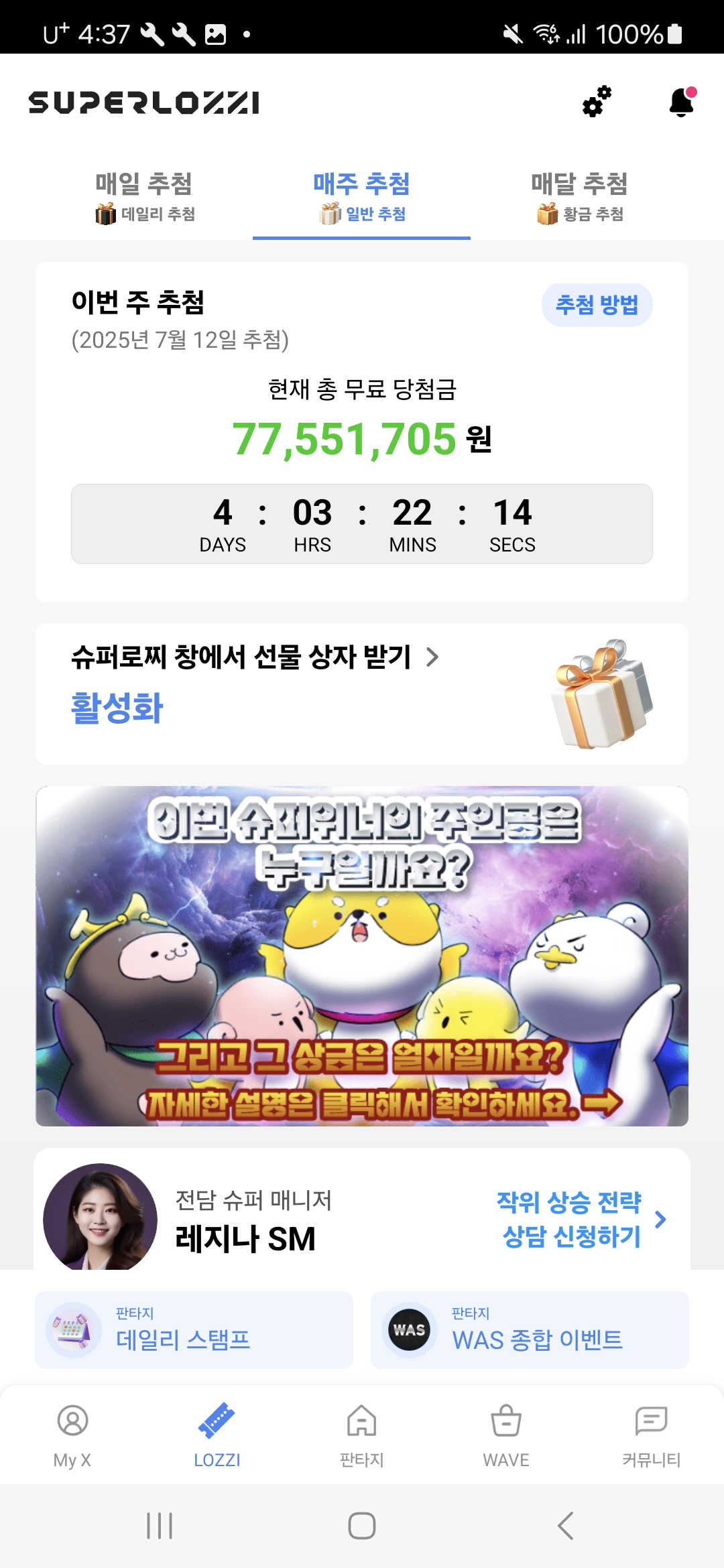 솔직히 말씀드리겠습니다. 매달 1등에 당첨될 확률은 극히 희박합니다. 하지만 중요한 것은 1등이 아니더라도 3~5등 당첨을 통해 소소한 수익을 꾸준히 창출할 수 있다는 점입니다. 실제로 많은 사용자들이 한 달에 무료로 몇 천원 씩 벌어가고 있고, 멤버십을 구독할 경우 저 같은 경우에 월 5만원 정도는 다시 회수하고 있습니다. 한 달에 커피 한두 잔 값 정도의 소액 당첨을 목표로 꾸준히 참여하다 보면, 언젠가 3등 이상의 행운이 찾아올 수 있다는 '기대감'이야말로 슈퍼로찌의 가장 큰 가치입니다.
