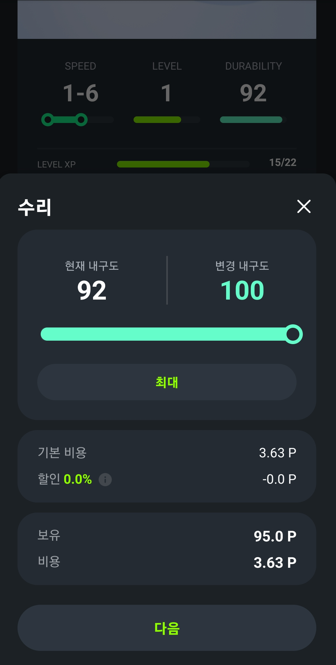 내구도, 속도 등 업그레이드 할 때 변화되는 수치들이 있기 때문에