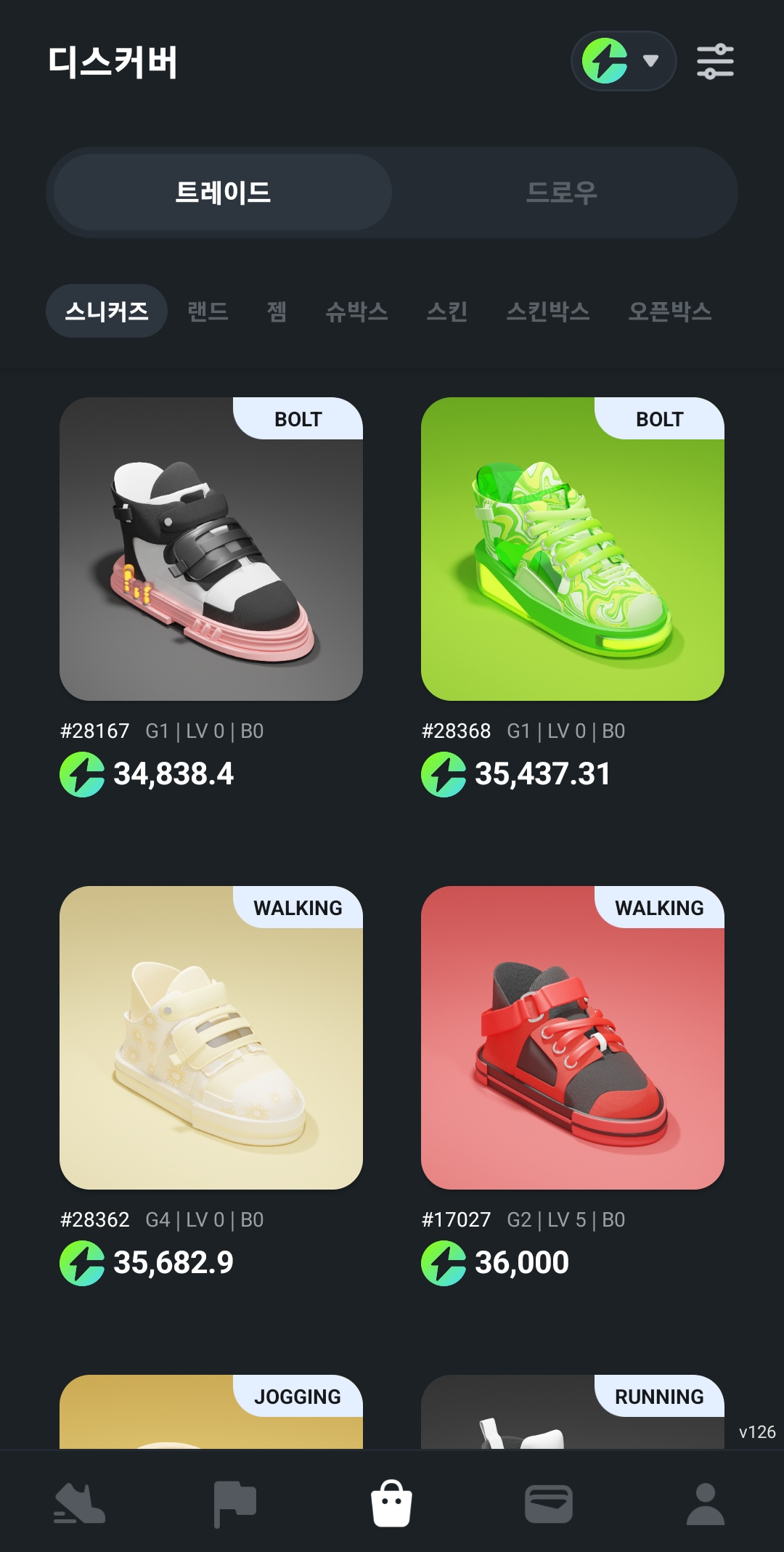SNKRZ는 우리나라에서 개발한 M2E 앱입니다. 슈퍼워크와 비슷하게 신발과 아이템을 코인으로 구매하고